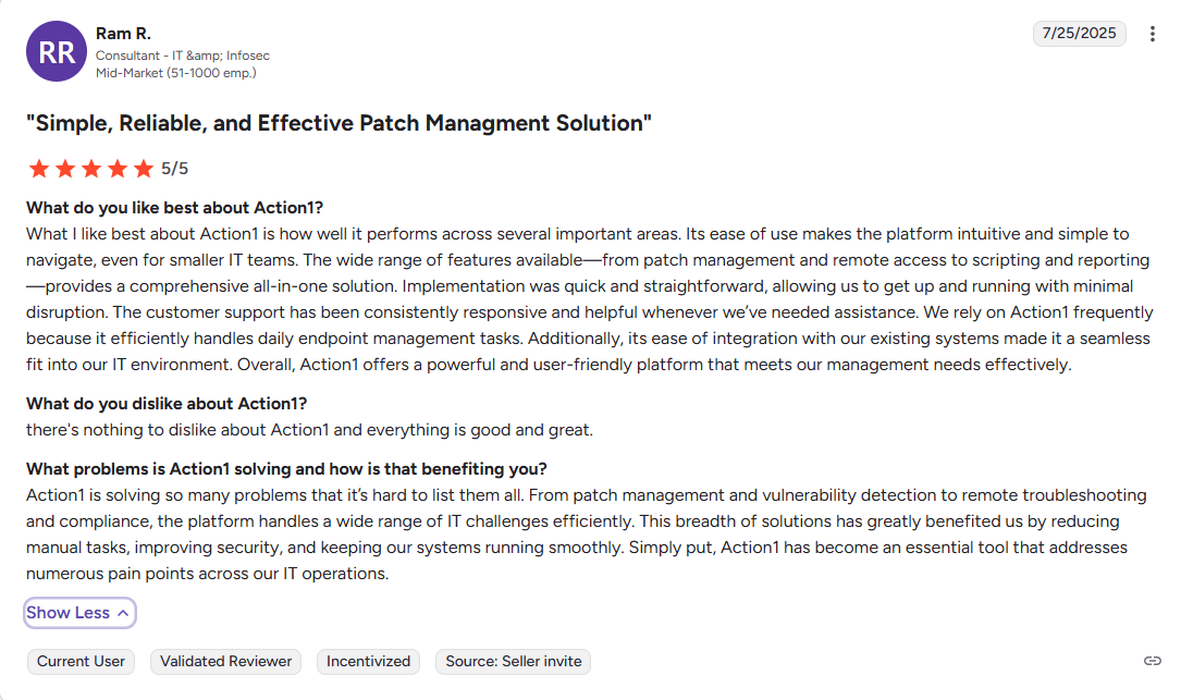 - #1 easiest-to-use patch management solution as ranked by independently verified customers on G2.